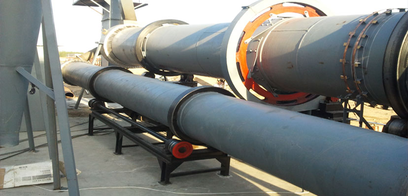 污泥由给料机经溜槽进入烘干机内导料板上,随着筒体的转动,污泥被导至倾斜扬料板上即被提升到筒体的中心位置,逐渐洒落形成料幕,高温气流从中穿过,使污泥预热并蒸发部分水分。当污泥洒落、移动到活动的篦条式翼板上时,物料又与预热过的篦条式翼板夹杂在一起,将热量传给物料,使部分水分蒸发。同时,翼板夹带物料提起、洒落,重复多次,物料与热气流进行对流和接触热交换。同时埋在物料中的清扫装置,也沿圆弧形扬料板的里侧下滑,把扬料板内壁粘附的物料清扫下来。当清扫装置随筒体转过垂直线以后,又在圆弧扬料板背面拖动,将其粘附在扬料板外壁的物料清扫下来。随着筒体的不断转动,使部分水分蒸发,污泥得到进一步干燥。同时,清扫装置对污泥团球也起到了打碎作用,提高了干燥速度,较后污泥干燥后变成低水分的松散物料,由出料口排出。